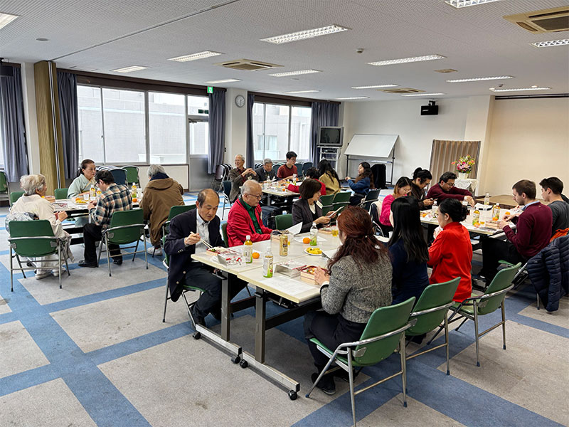 留学生と交流する会(FSSC)恒例の年末交流会が、2025年12月13日(土曜日)13時~16時で目黒駅からほど近い品川区上大崎にある公益社団法人三州倶楽部の2階大ホールにて留学生9名、ボランティア16名の参加を得ておこなわれました。
