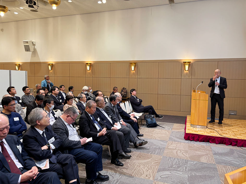 2025年度の第2回銀杏懇話会は、講師に1993年法学部ご卒業の木村正明氏をお迎えして11月7日(金)、主婦会館プラザエフにて開催いたしました。木村氏は、今年J1リーグに昇格し、見事残留も決めたファジアーノ岡山の運営法⼈であるファジアーノ岡山スポーツクラブのファウンダー・オーナーで東京大学先端科学技術研究センター特任教授をされています。地元岡山でのスポーツクラブ育成の経験をもとに『東大起業家が挑戦したJ1リーグへの道』と題してお話をいただきました。